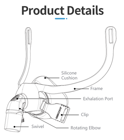 1. 360°+ 45°articulated type 3D rotation to prevent pulling of the mask from movement at night